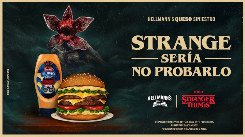 “Strange sería no probarla”, señala Rodolfo Covarrubias, Sr. Brand Manager Hellmann’s. “Queremos acompañar a todo el fandom de Stranger Things en esta última temporada, por eso Hellmann’s ha lanzado este nuevo sabor queso, para que todos los fans se sorprendan, no solo por la serie, sino también por el irresistible sabor de este producto. Estamos muy emocionados por que disfruten frente a las pantallas lo que Netflix y Hellmann’s hemos preparado para ustedes”. destacó.