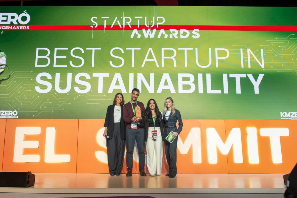 Beatriz Jacoste, CEO de KM ZERO, también otorgó mención honorífica en la misma categoría a la startup argentina Bio Blends, firma que a base de gas crea productos para prolongar la vida útil de los alimentos sin afectar sus propiedades, lo que permite a los fabricantes desarrollar productos de etiqueta limpia y evitar el desperdicio de alimentos por contaminación, al considerar que un tercio de todos los alimentos producidos se desperdicia, lo que suma entre el 8% y 10% de las emisiones globales de gases de efecto invernadero.