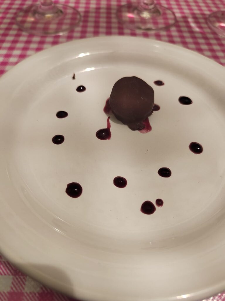 El menú incluye helado de queso fresco con nuez; bizcocho de nuez de castilla con crema pastelera de nuez de castilla y reducción de jerez; macaron de almendra con ganache de chile ancho y granada (especialmente delicioso, por la textura de la granada y el contraste picante); mousse de queso de cabra y reducción de vino tinto y nuez de castilla garapiñada.