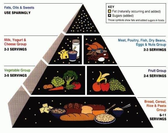 Pirámide nutricional 1992, Departamento de Salud Estados Unidos.