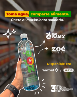 Este 25 de febrero, Zoe Water celebró el cierre de la campaña con la Red de Bancos de Alimentos de México; la Red de Bancos de Alimentos tiene como propósito recuperar los excedentes de la red agroalimentaria para hacerla llegar a quien más lo necesita y es una de las redes más importantes de recuperación en el mundo.